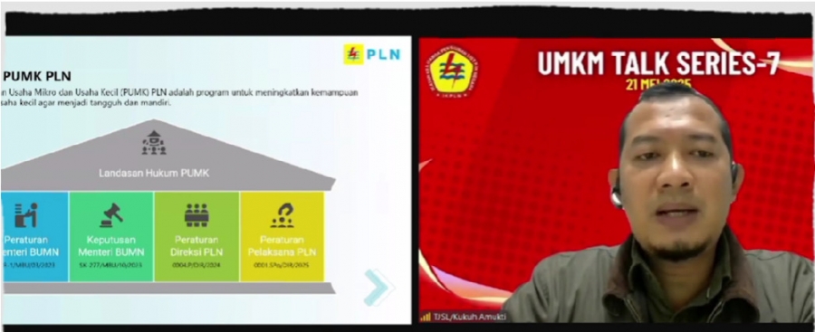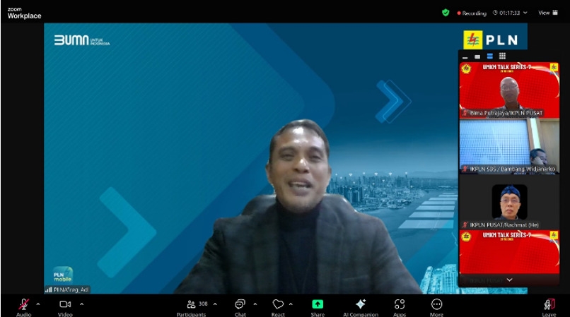 (Jakarta, 21 Mei 2025) IKPLN Pusat sukses menyelenggarakan UMKM Talk Series #7 dalam bentuk webinar pada hari Rabu 21 Mei 2025. Acara yang menghadirkan tiga pembicara dengan tema berbeda itu dihadiri oleh EVP Komunikasi Korporat dan TJSL PLN Gregorius Adi Trianto, Ketua Umum IKPLN Syamsul Huda, Ketua II IKPLN Bob Saril, para pengurus IKPLN Pusat, Daerah dan Cabang serta anggota dengan total 314 peserta webinar.